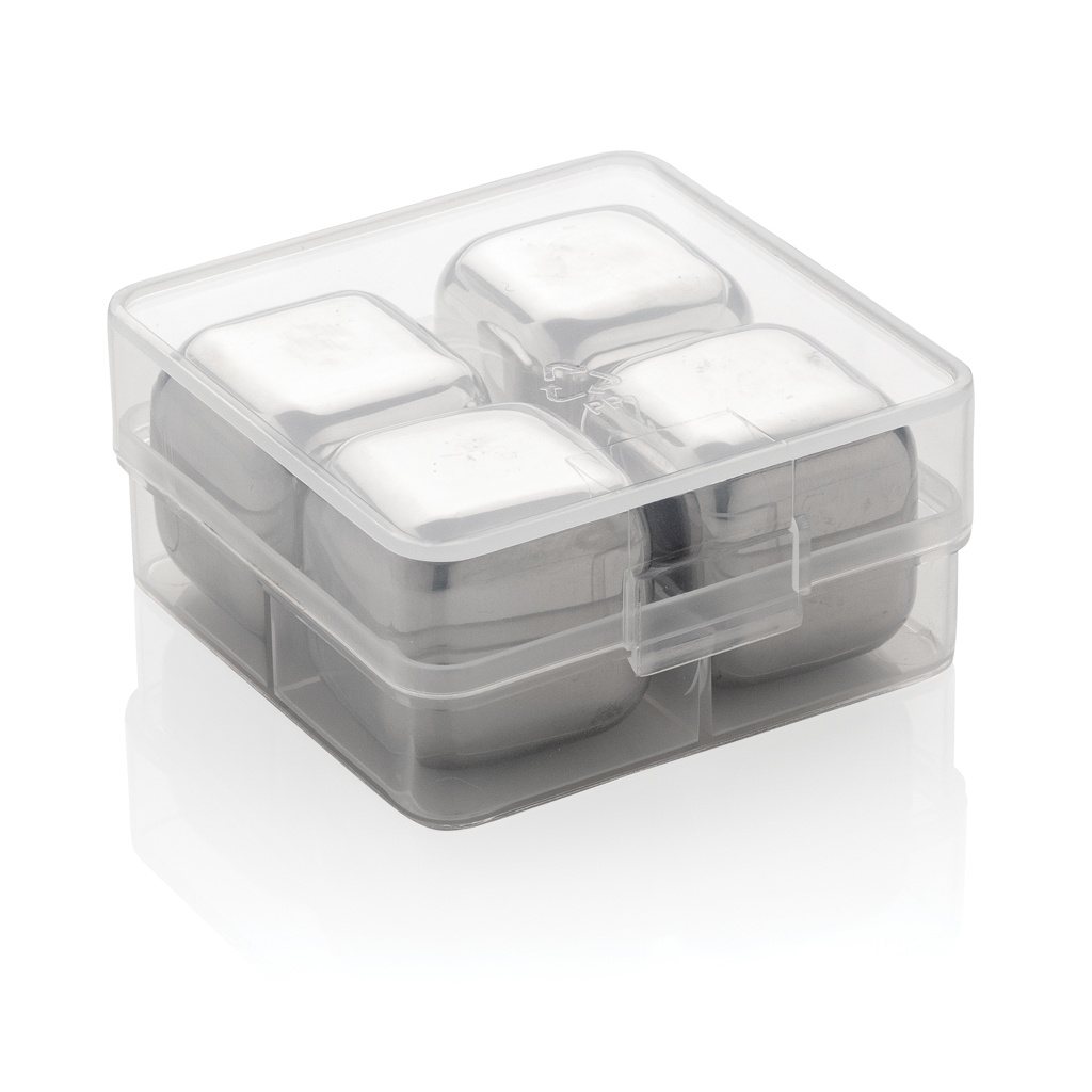 Nauti jäähdytetystä juomastasi tällä settillä, joka koostuu neljästä ruostumattomasta teräksestä valmistetusta jääkuutiosta. Kuutiot auttavat säilyttämään suosikkijuoman maun laimentamatta. Setti tulee kätevässä säilytyslaatikossa. Niitä on helppo käyttää: säilytä ne vain pakastimessa ja ne ovat käyttövalmiita vain 3 tunnissa! Kuution koko 2,5x2,5x2,5 cm.