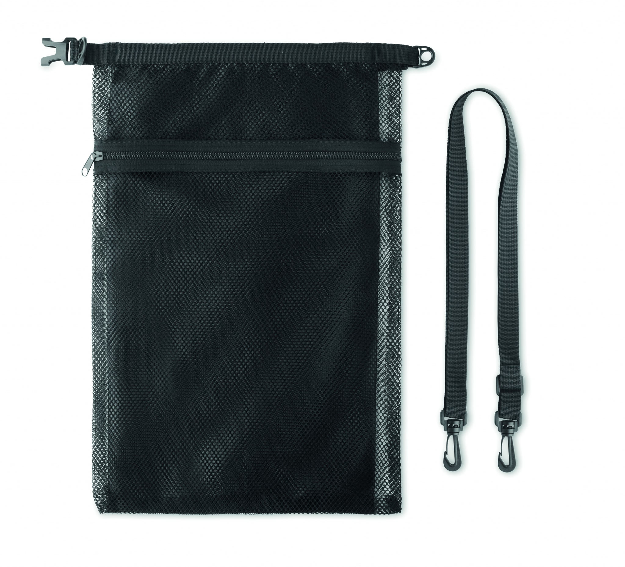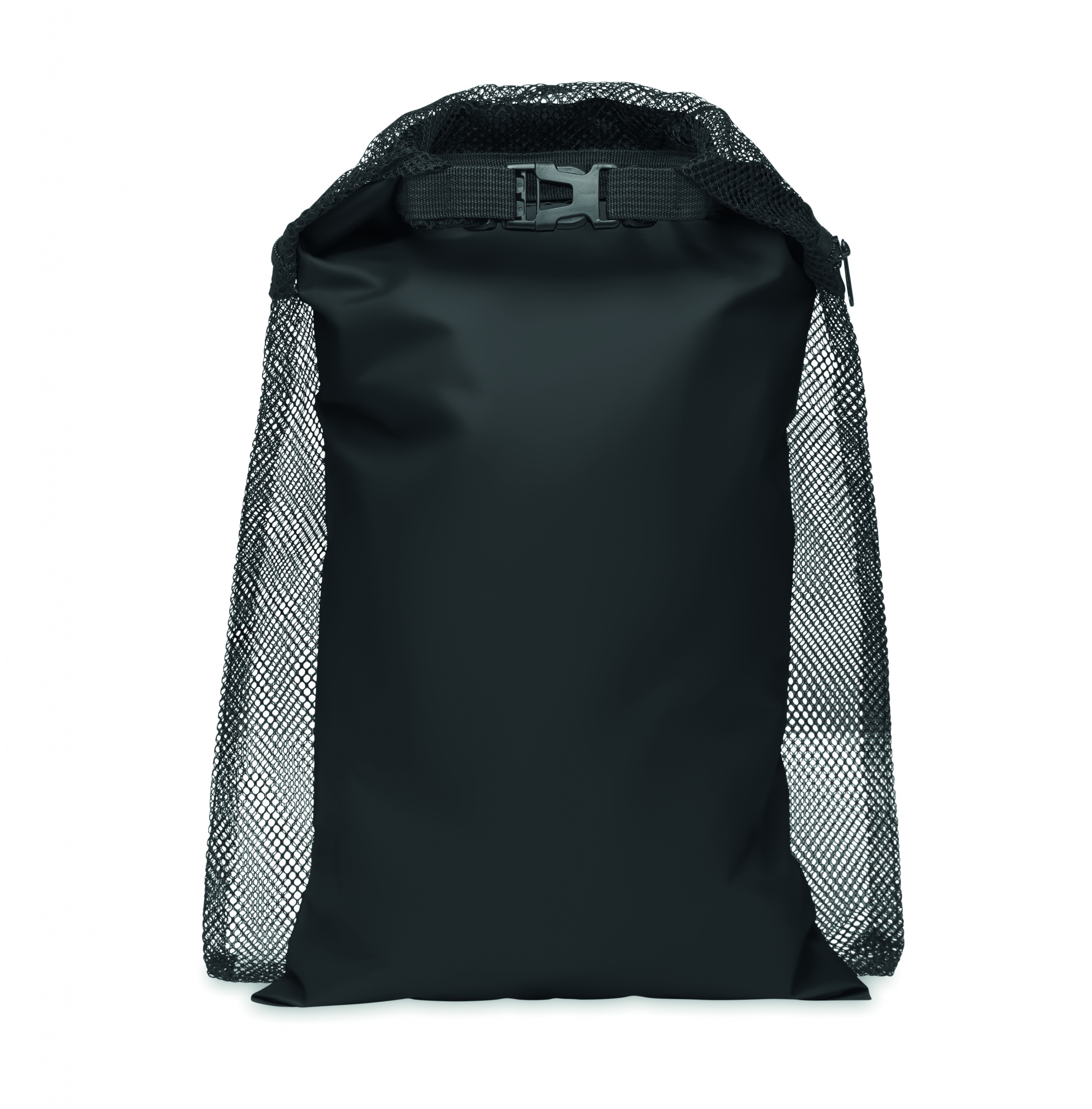 210D RPET vedenpitävä kassi, verkkokassin sisällä. Säilytä arvotavarasi tämän kassin sisällä ollessasi veneilemässä taikka rannalla, tuote ei kellu. Molemmat kassit on valmistettu kierrätetystä RPET muovista, tilavuus 6 litraa.