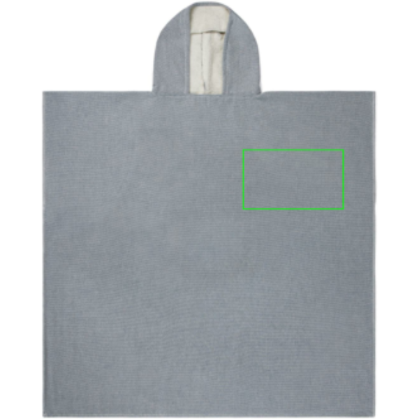 Hamam-poncho, jossa on kaksi erilaista tekstuuria: toinen puoli froteeta ja toinen puoli sileää kudosta. Poncho on käytännöllinen ja monipuolinen vaate, joka sopii erinomaisesti rannalle tai uima-altaalle. Sen imukyky on erinomainen ja se kuivuu nopeasti. Poncho on valmistettu 75 % puuvillasta ja 25 % polyesteristä, ja sen paksuus on 360 g/m². Mitat: 100 x 95 cm. OEKO-TEX® STANDARD 100. 09.HIN.68091. Hohenstein HTTI.