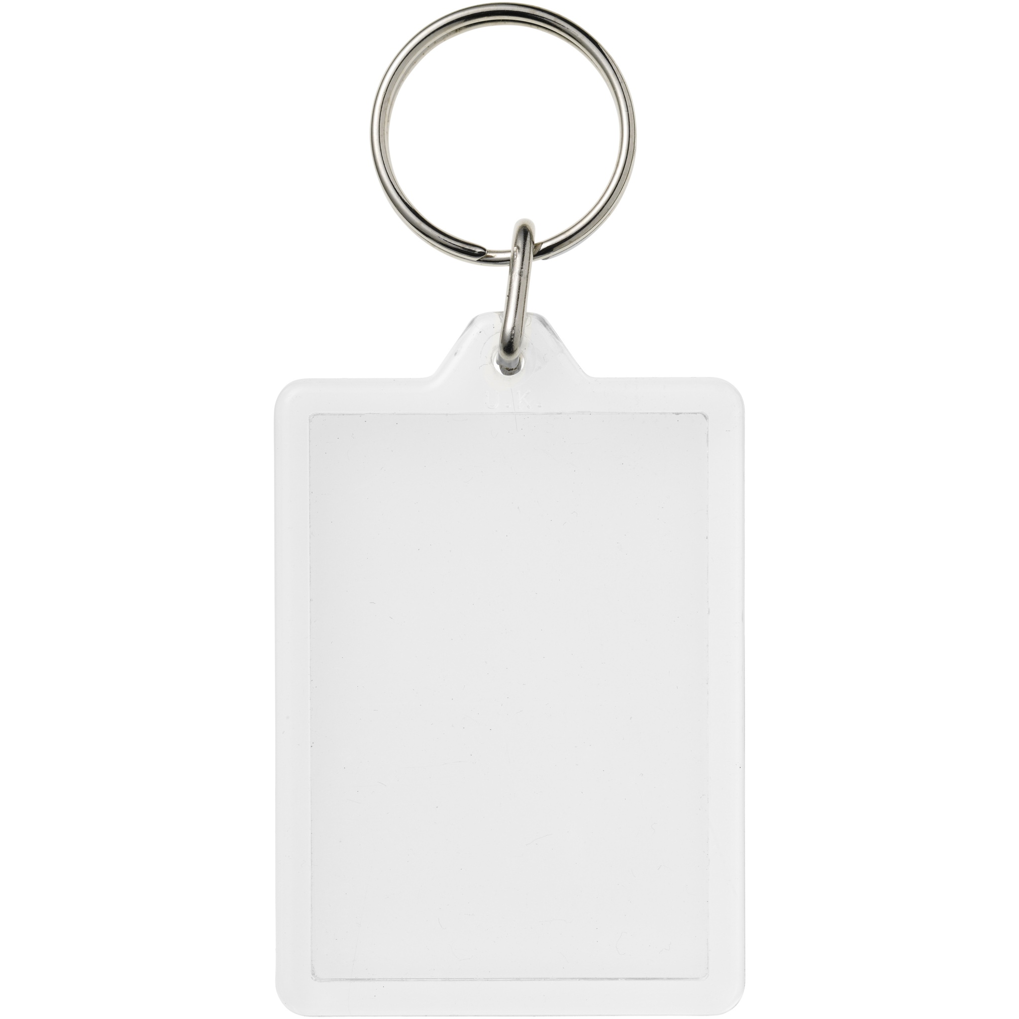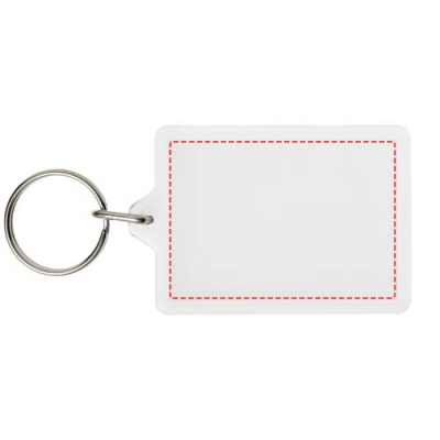Kirkas suorakaiteenmuotoinen C1-avaimenperä, jossa on metallinen avainrengas. Metallirengas tekee profiilista litteän, mikä on ihanteellista postituksen kannalta. Tulosteinsertin mitat: 5,0 cm x 3,5 cm.