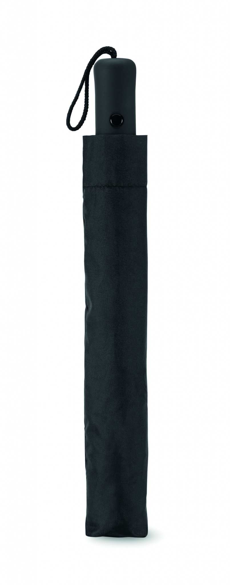 21 colio 2 kartus automatiškai atidaromas skėtis 190T ponge su cinkuotu plieniniu kotu, briaunomis ir antgaliais. Juoda gumuota ABS rankena. Pridedamas atitinkamas maišelis. Rankinis uždarymas.