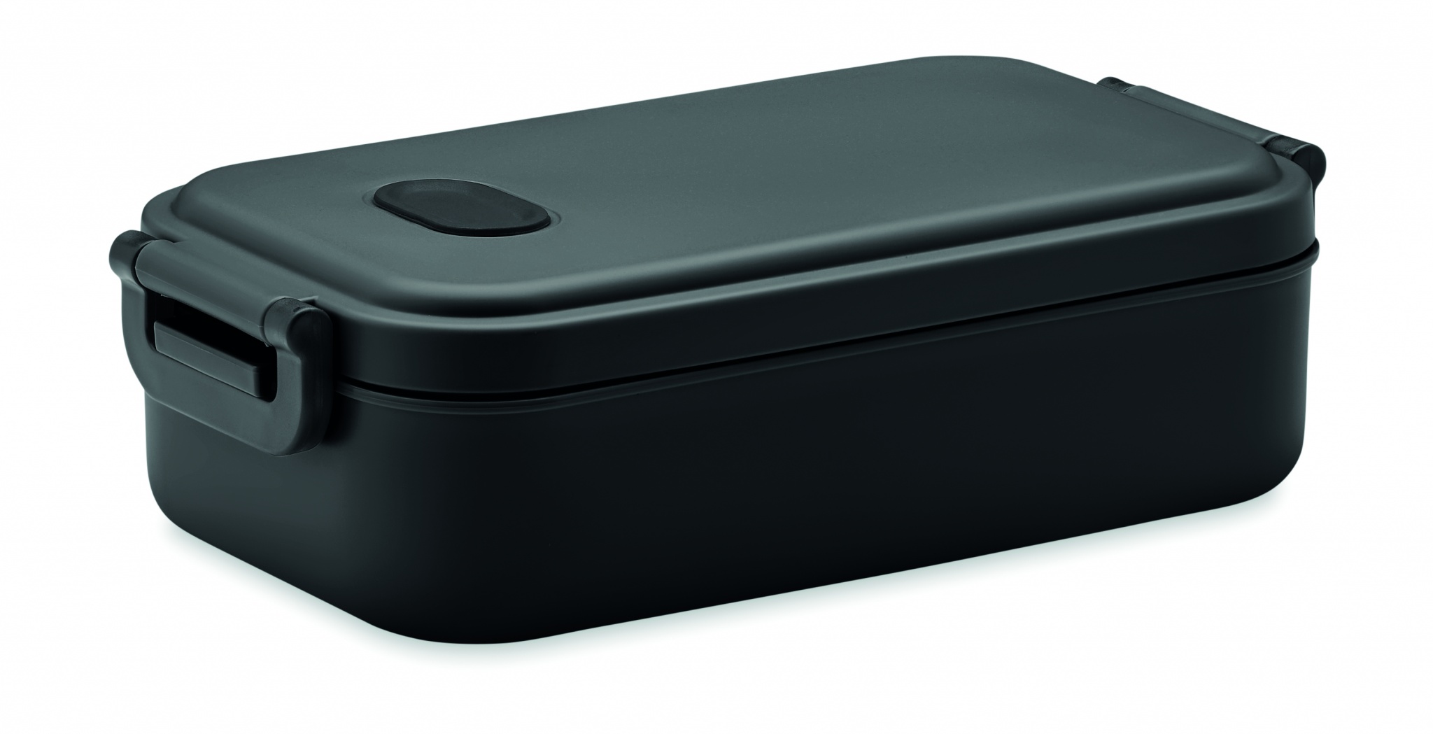 Perdirbta PP priešpiečių dėžutė su sandariu dangteliu, silikoniniu vožtuvu ir dviem šoninėmis sagtimis. Talpa: 800 ml.