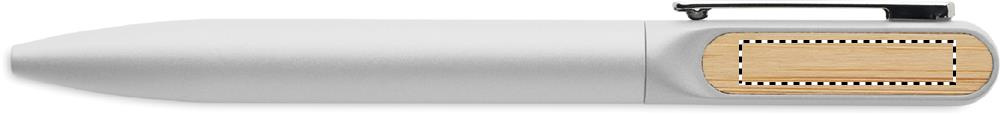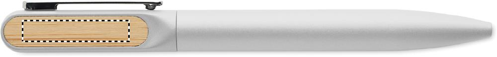 Sukamas tušinukas su perdirbto aliuminio korpusu, perdirbto ABS sukamąja dalimi ir metaliniu segtuku su bambuko detalėmis. Mėlynas rašalas.