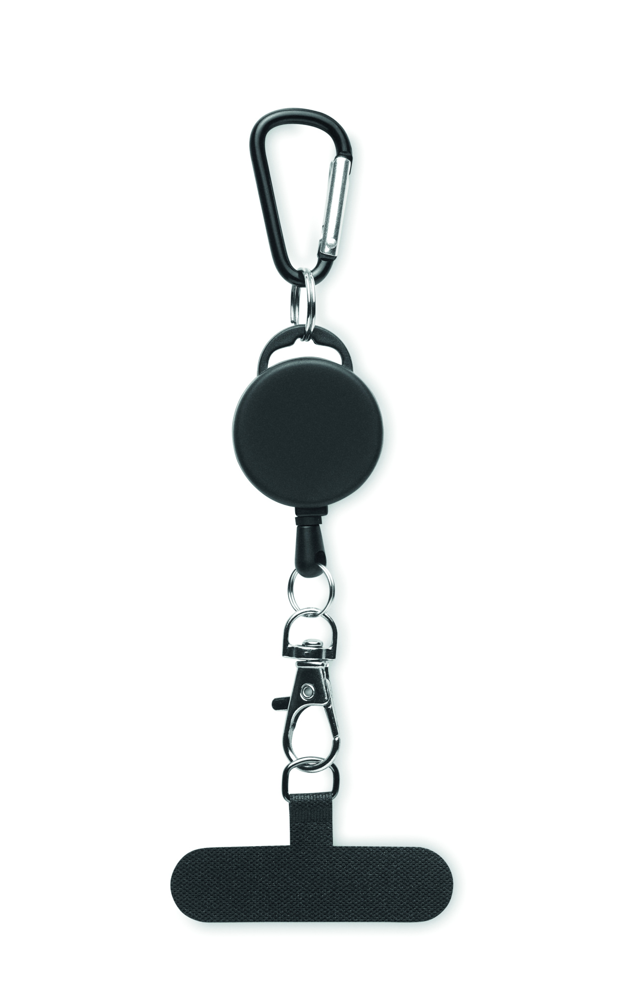 Ievelkams telefona turētājs un/vai nozīmīšu turētājs no ABS plastmasas ar alumīnija karabīni. Karabīne nav paredzēta alpīnismam (neprofesionālai lietošanai).
