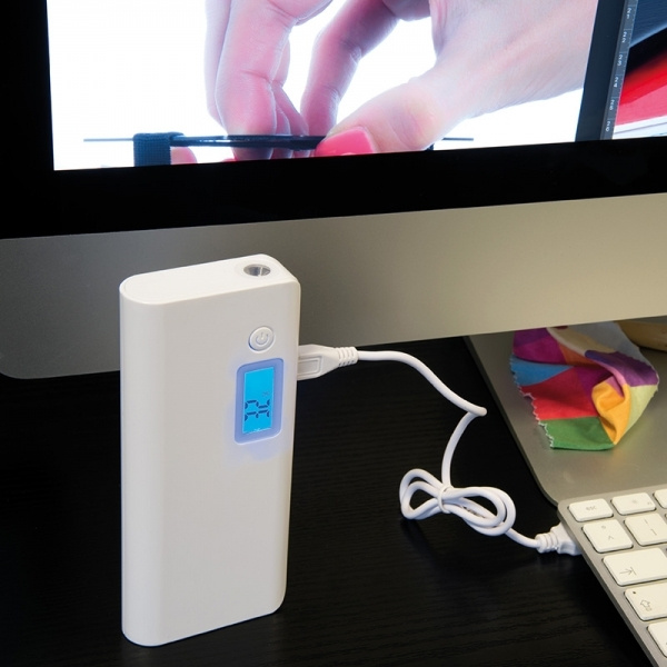 Strāvas banka ar 10 000 mAH ietilpību, USB uzlādes kabeli un digitālās darbības displeju, lai parādītu atlikušo jaudu. Izmantojot šo plastmasas barošanas banku, viedtālruni var uzlādēt vairākas reizes. Mēs uzdrukāsim jūsu logotipu augšpusē.