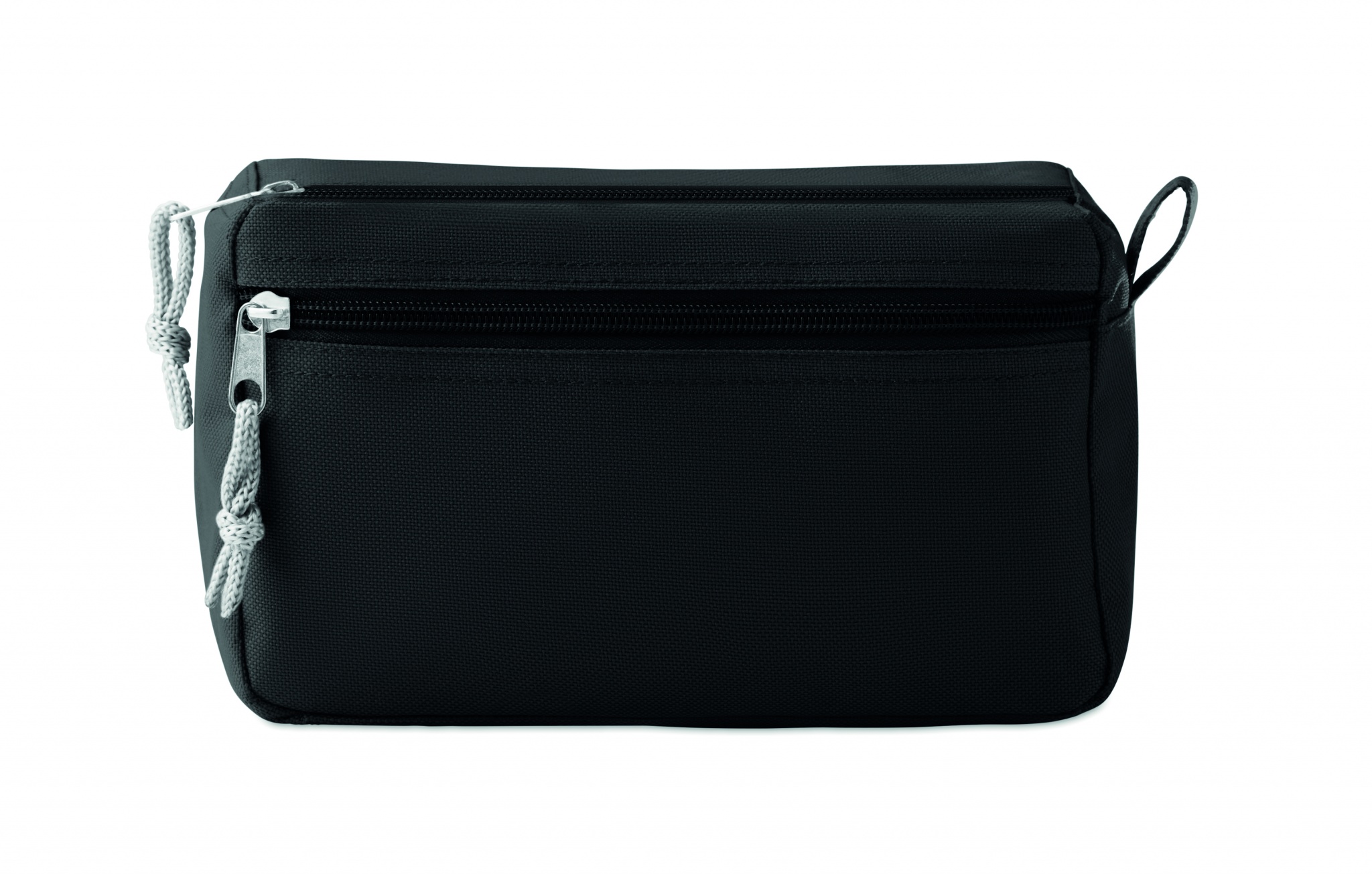 Kosmētikas soma ar dubultu rāvējslēdzēju. 600D poliesters ar IAL pamatni.
