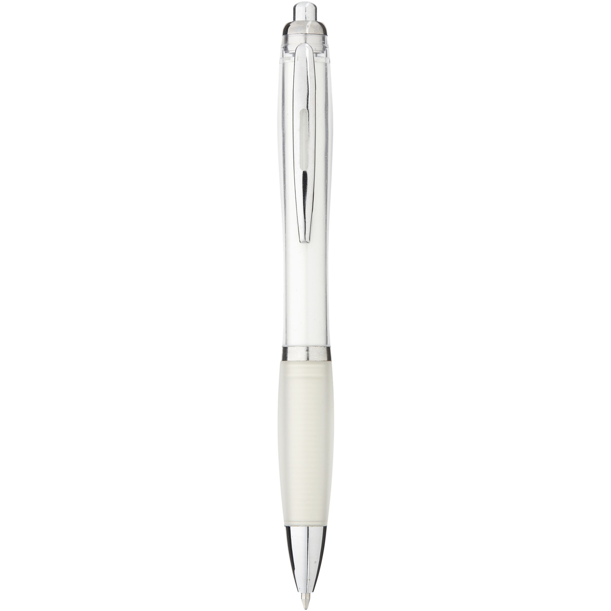 Lodīšu pildspalva ar klikšķināšanas mehānismu un mīkstu pieskārienu rokturi.