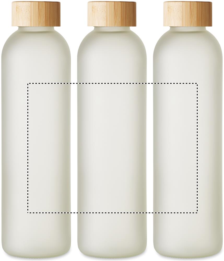 Stikla pudele ar speciālu pārklājumu sublimācijai un bambusa vāku. Tilpums: 650 ml. Bambuss ir dabisks produkts, katrai precei var būt nelielas krāsas un izmēra atšķirības, kas var ietekmēt gala apdares rezultātu.