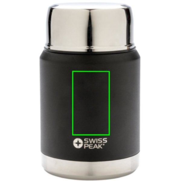 Swiss Peak Elite sērija ir ar vakuuma izolāciju un dubultsienu 18/8 klases nerūsējošā tērauda. Pulverkrāsotā melnā krāsa ir veidota tā, lai tā būtu izturīga! Šeit nav izbalēšanas vai plaisāšanas! Iekšējā siena ir pārklāta ar varu, lai nodrošinātu maksimālu vadītspēju, lai dzērieni būtu karsti 8 stundas un auksti 24 stundas. Šis pārtikas trauks uzturēs jūsu ēdienu karstu vai aukstu visas dienas garumā! Iekļauta 18/8 SS karote. Mazgāt tikai ar rokām. Necaurlaidīgs. Saturs 500 ml.