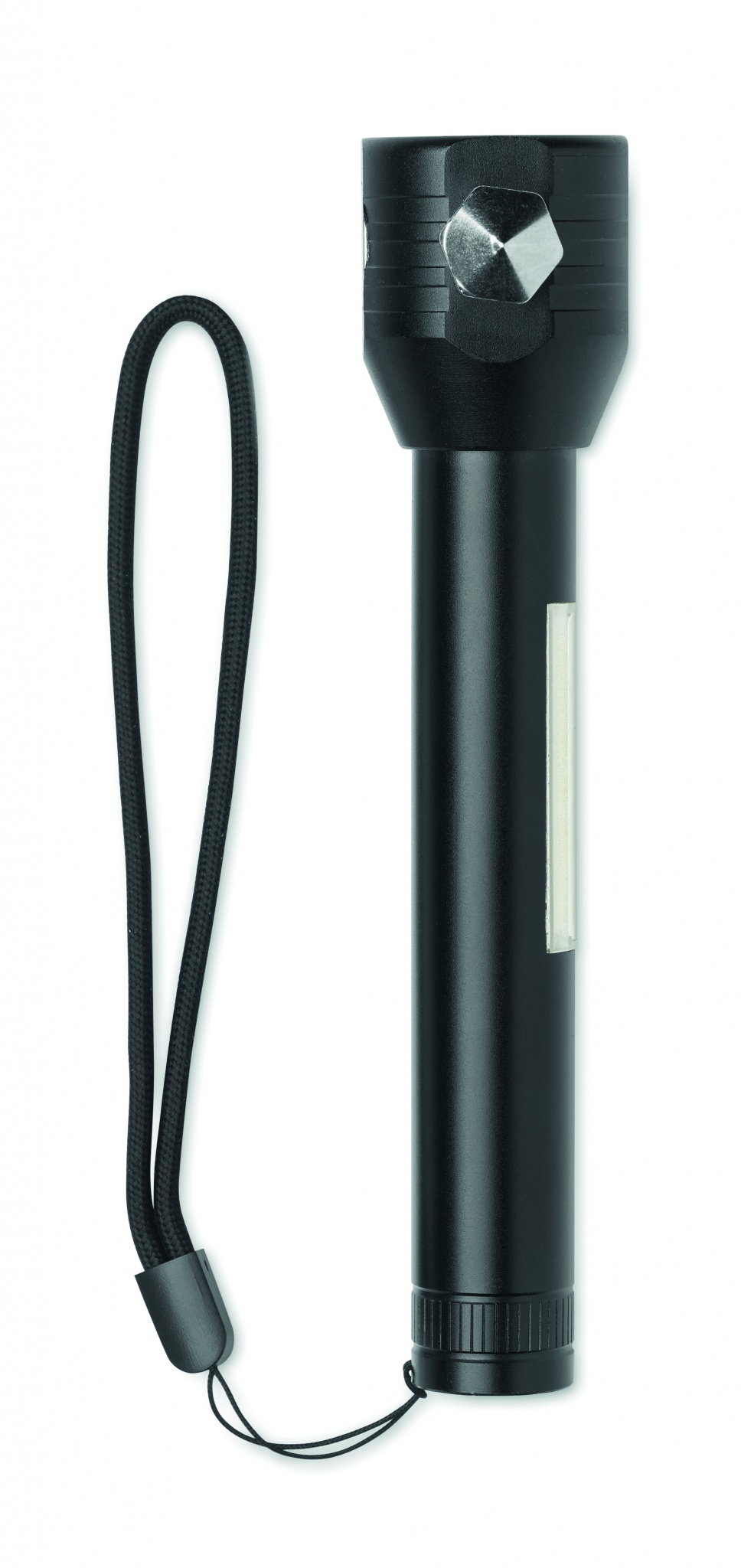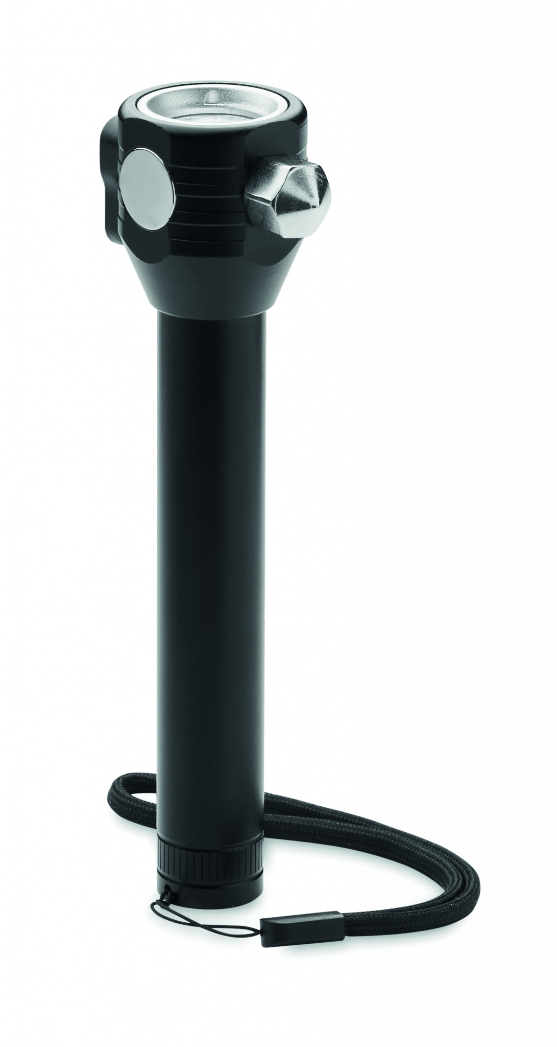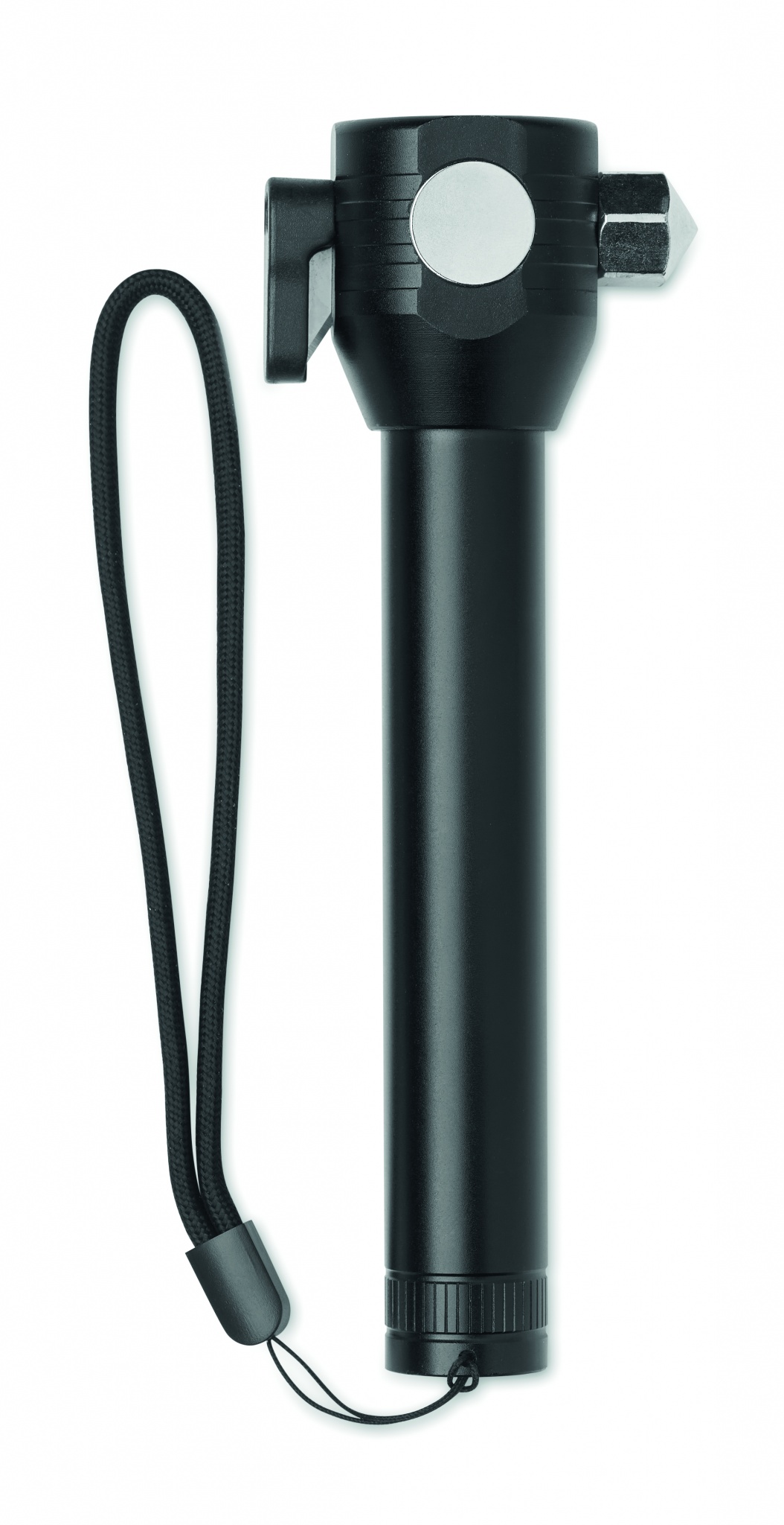 3-в-1 алюминиевый фонарь с аварийным молотком и резаком для ремня безопасности, с возможностью нанесения индивидуальной печати, Черный