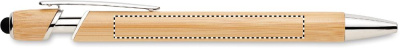 Stylus push button ball pen with bamboo finish. Blue ink.