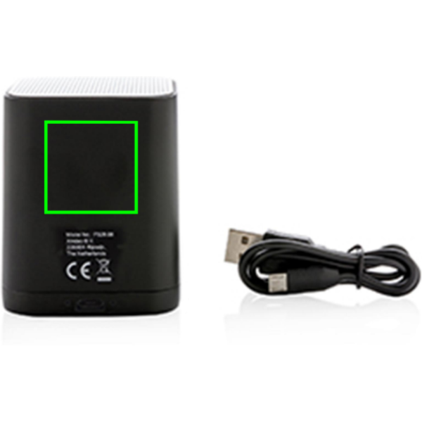 Беспроводной динамик мощностью 3 Вт, который можно персонализировать с помощью вашего логотипа на поверхности ABS. Логотип будет светиться для оптимального представления вашего бренда. Динамик использует BT 4.2 для плавного соединения на расстоянии до 10 метров. Встроенный аккумулятор емкостью 400 мАч позволяет воспроизводить музыку до 4 часов на 1 зарядке, а повторная зарядка выполняется за 1 час.