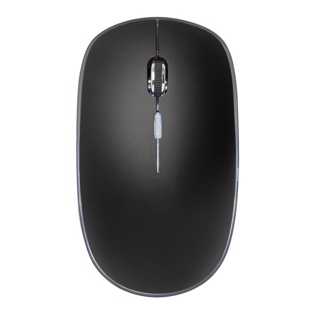 Удобная конструкция и перезаряжаемая беспроводная мышь с возможностью гравировки вашего логотипа, который будет светиться для дополнительной узнаваемости вашего бренда. Мышь имеет перезаряжаемую литий-полимерную батарею емкостью 300 мАч, которую можно перезаряжать за три часа. Скорость соединения 125 Гц через входящий в комплект и простой в установке USB-ключ. С левой и правой кнопкой щелчка и средней кнопкой прокрутки/щелчка. Чувствительность мыши можно легко настроить в соответствии с вашими личными предпочтениями. Совместима со всеми последними операционными системами Windows и Mac
