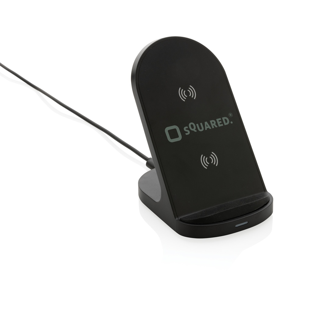 Лого трейд бизнес-подарки фото: Беспроводная подставка RCS из переработанного пластика с двумя катушками 15 Вт