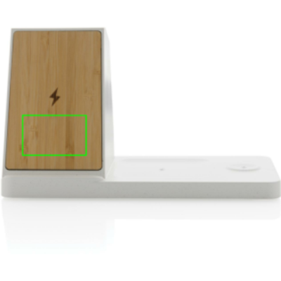 Лого трейд бизнес-подарки фото: Беспроводное зарядное устройство 3 в 1 из переработанного пластика и бамбука из Онтарио