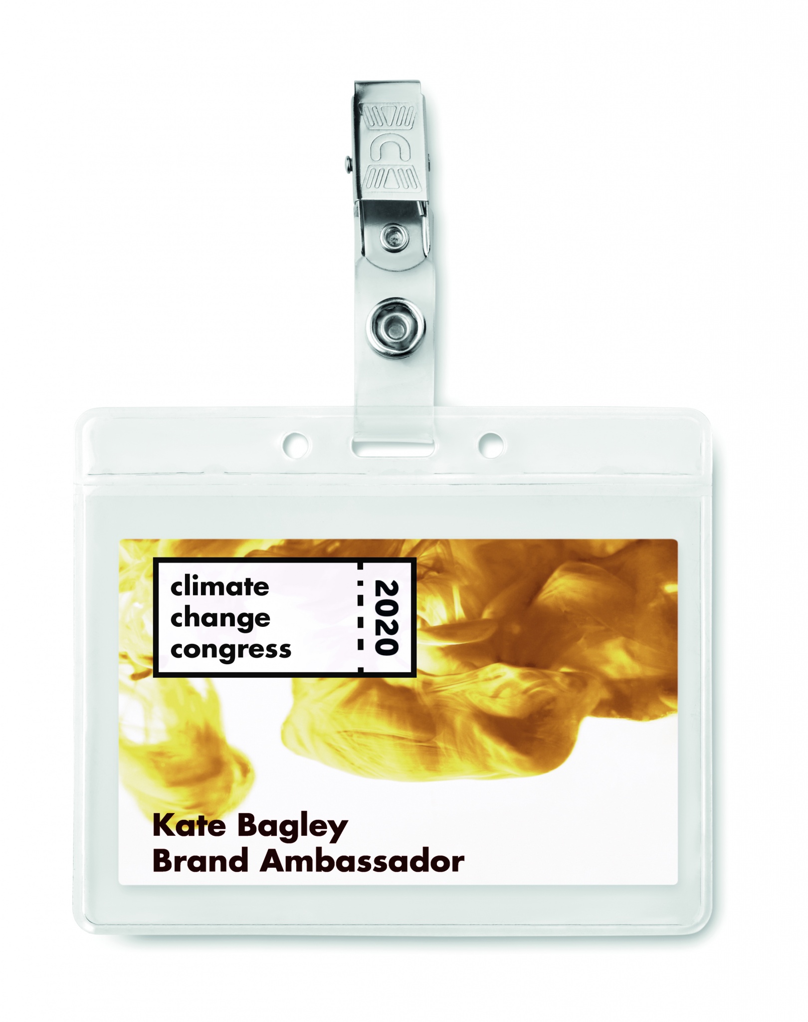 Бейдж холдер из ПВХ с металлической пряжкой.