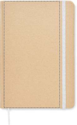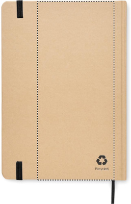 Блокнот формата A5 на резинке в твердой обложке из переработанного картона. В переплете. 160 страниц в клеточку из переработанного картона (80 листов). Ленточка-закладка.