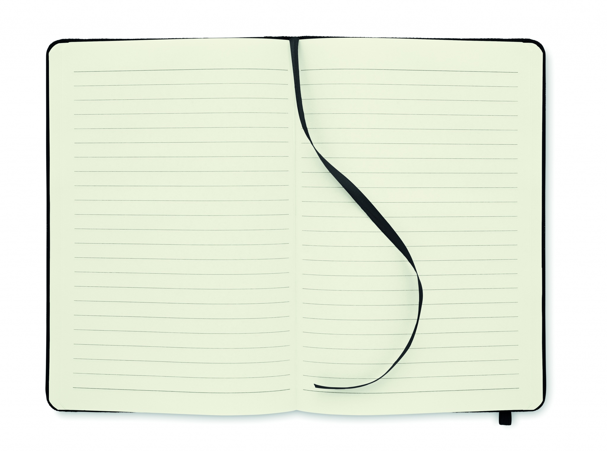Блокнот A5 с обложкой из RPET 600D. Блок на 80 линованных страниц из переработанной бумаги с резинкой и закладкой.