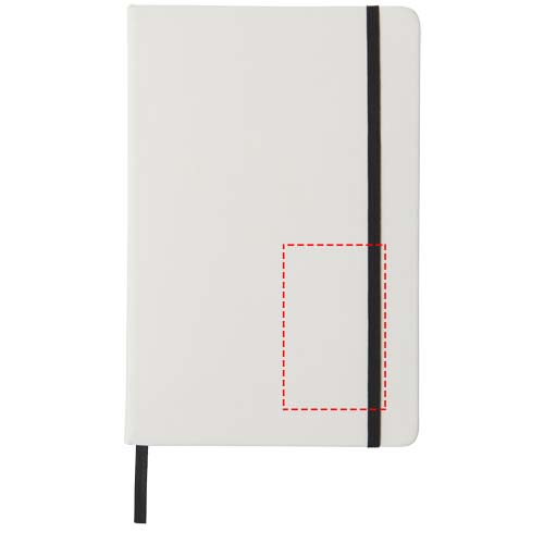 Блокнот формата A5 с цветной эластичной застежкой и ленточкой. Блокнот содержит 80 листов линованной бумаги (60 г/м²). На обложке возможна цифровая печать.