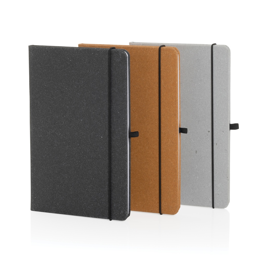 Блокнот в твердом переплете из переработанной кожи формата А5, серый