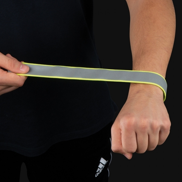 Гибкий, светоотражающий браслет безопасности с защелкой из пластика с металлической пружиной. Ваш логотип будет напечатан на светоотражающей поверхности.
