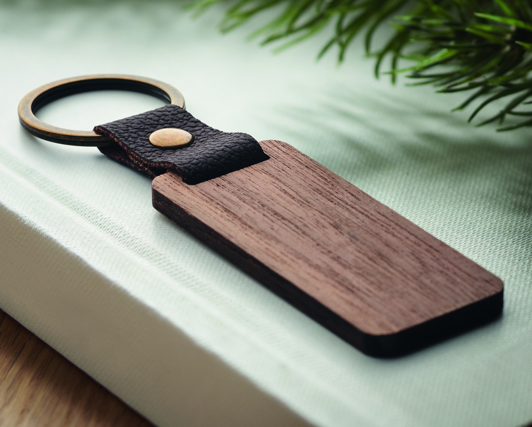 Брелок для ключей из древесины орехового дерева и полиуретана.
