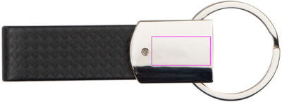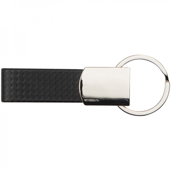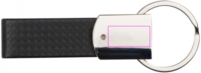Элегантный металлический брелок с ремешком под карбон. Ваш логотип будет выгравирован на хромированной поверхности.
