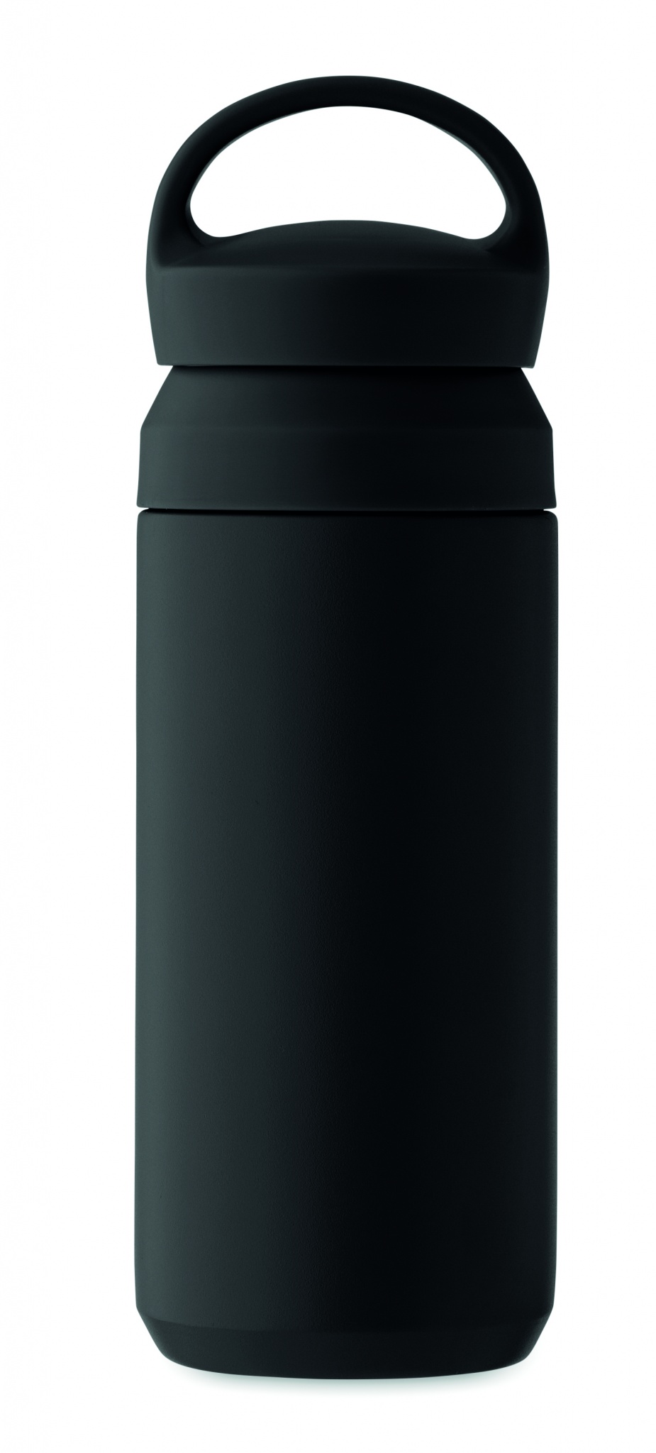 Двустенная термобутылка из переработанной нержавеющей стали (90%) и обычной нержавеющей стали (10%) с двойной крышкой из переработанного полипропилена, открывающейся для легкой очистки. Герметична. Объем: 320 мл.