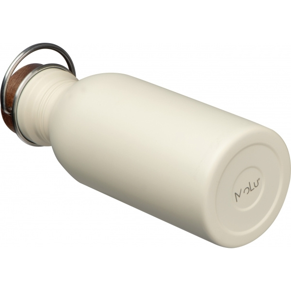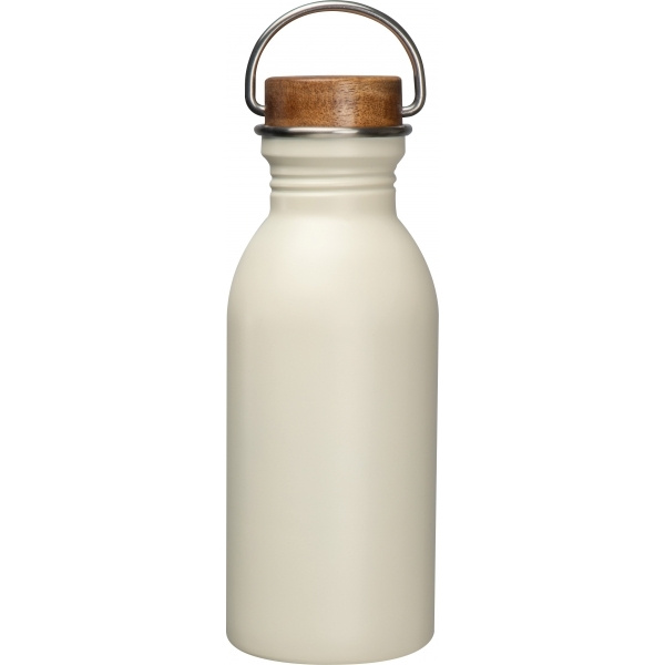 Бутылка для питья из переработанной нержавеющей стали, закрытая крышкой из акации, оснащена ручкой для переноски. Емкость 500 мл.