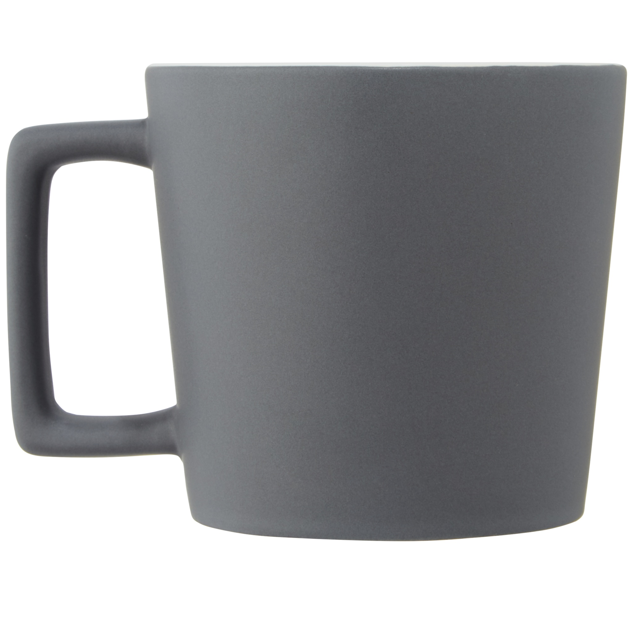 Керамическая кружка с современным дизайном и матовой отделкой. Объем 370 мл. Можно мыть в посудомоечной машине (все способы декорирования). В подарочной коробке из переработанного картона.