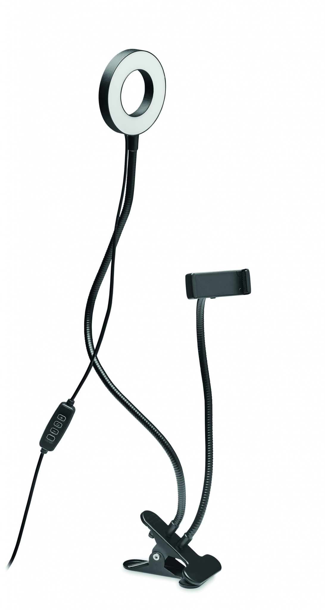 Портативный светодиодный кольцевой фонарь для селфи 24 см с держателем для телефона и зажимом. Идеально подходит для tik-tok®, прямых трансляций и фотографии. Белый, теплый, свет с 3 уровнями яркости.