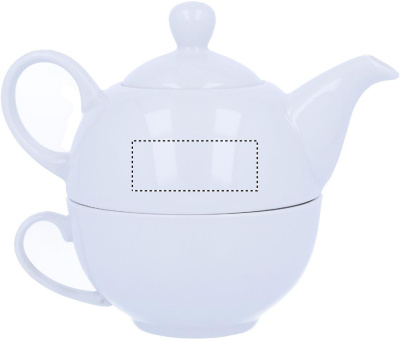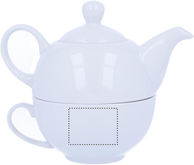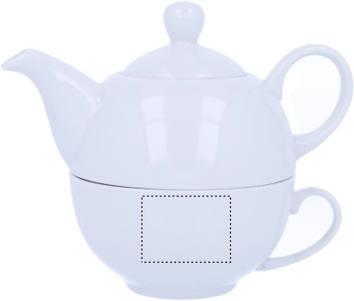Чайник объемом 400 мл и чашка из белой керамики. Упаковка - черная подарочная, картонная. Тампопечать: нельзя мыть в посудомоечной машине. Деколь: можно мыть в посудомоечной машине.