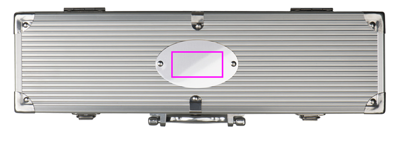Чехол для барбекю, состоящий из щипцов для барбекю, вилки для мяса и лопатки для барбекю в металлическом чехле. Мы наносим лазером ваш логотип на овальную металлическую пластину чехла.