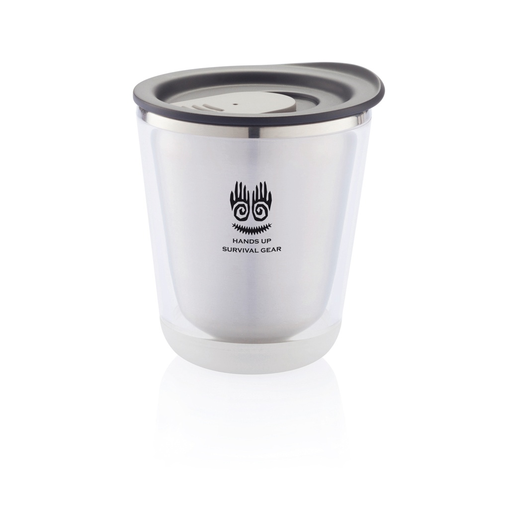 Закрывающаяся, изолированная и достаточно компактная, чтобы поместиться под кофемашиной (227 мл). Она также очень гигиенична, поскольку внутренняя часть кружки сделана из нержавеющей стали, а не из пластика. Разработана таким образом, чтобы кружку было легко разобрать для переработки. Зарегистрированный дизайн®