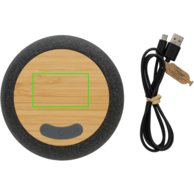 Беспроводная колонка мощностью 5 Вт с кристально чистым звуком. Изготовлена из бамбука FSC® 100%, переработанного АБС и ПЭТ, сертифицированных по стандарту RCS (Recycled Claim Standard). Общее содержание переработанных материалов: 51% от общего веса изделия. Сертификация RCS гарантирует полностью сертифицированную цепочку поставок переработанных материалов. Колонка оснащена аккумулятором емкостью 1200 мАч, обеспечивающим до 6 часов воспроизведения, и BT5.3 для плавного подключения и чистого звука. Радиус действия подключения до 10 метров. С микрофоном для ответа на звонки. Упакована в коробку из крафт-бумаги FSC® mix. В комплект входит кабель для зарядки из переработанного ТПЭ, сертифицированный по стандарту GRS. Изделие и аксессуары на 100% не содержат ПВХ.
