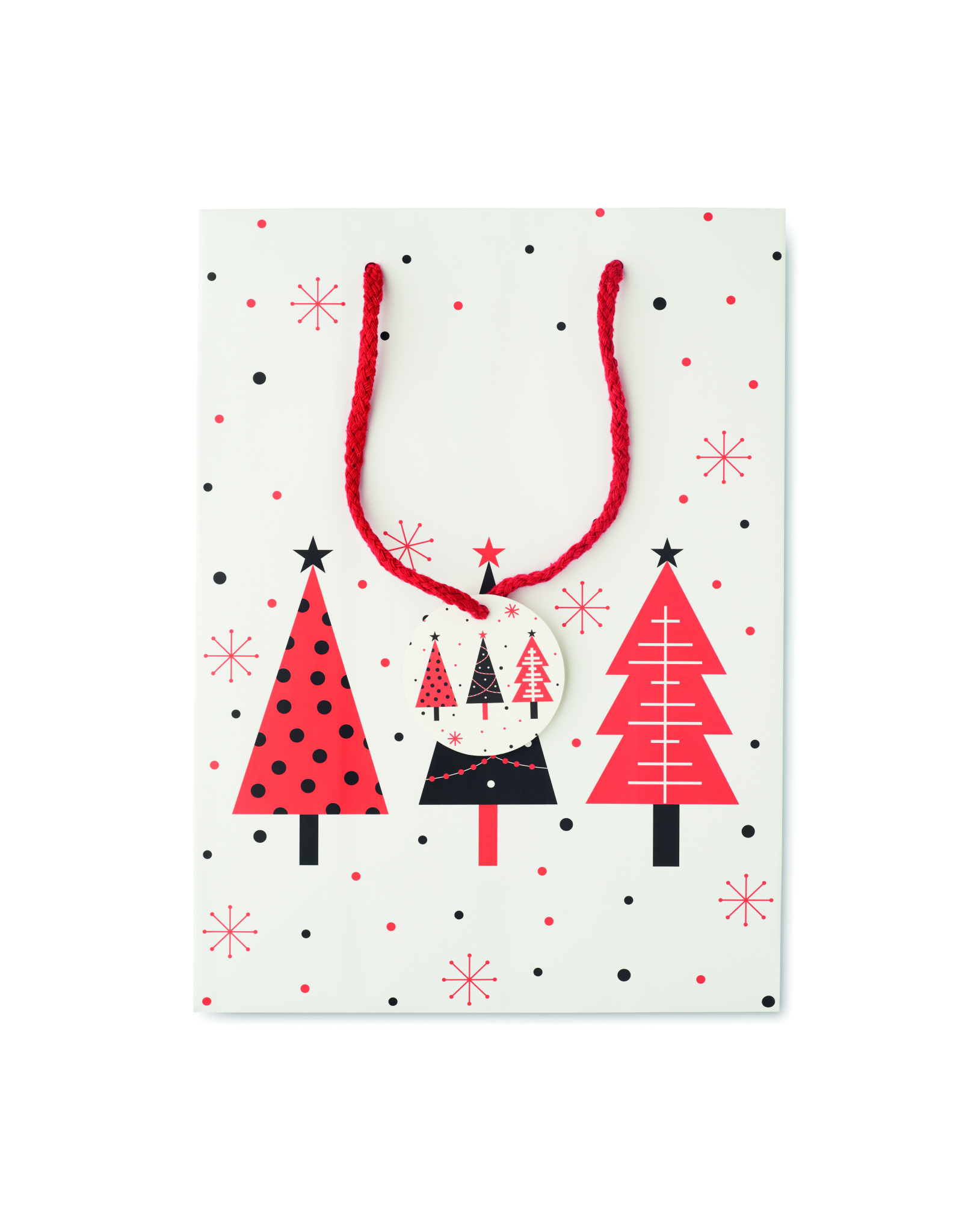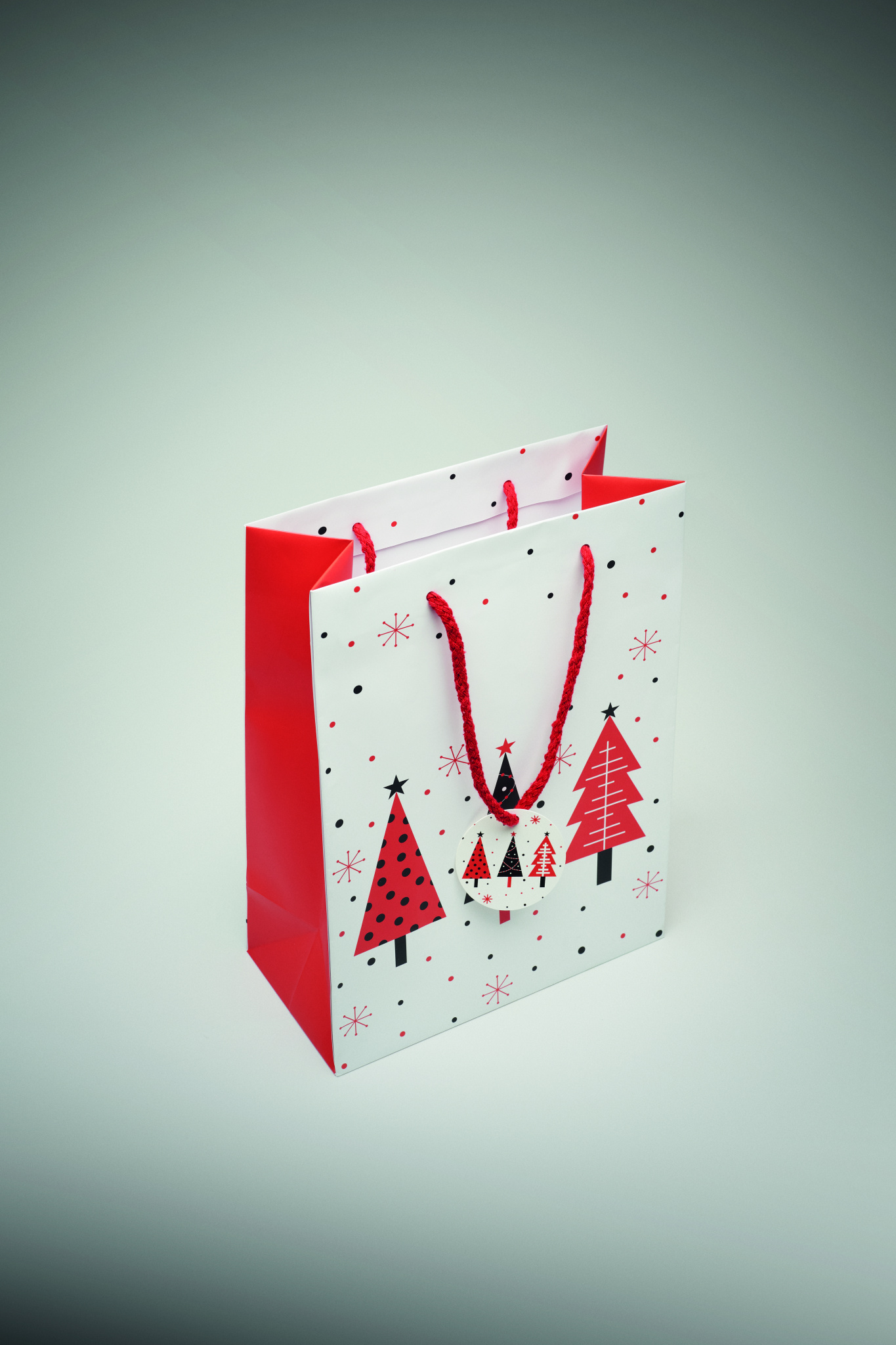 Christmas medium gift paper bag (30% recycled) with tag included. 150 gr/m². FSC®-certified | FSC MIX, W5.3, FSC-C213206