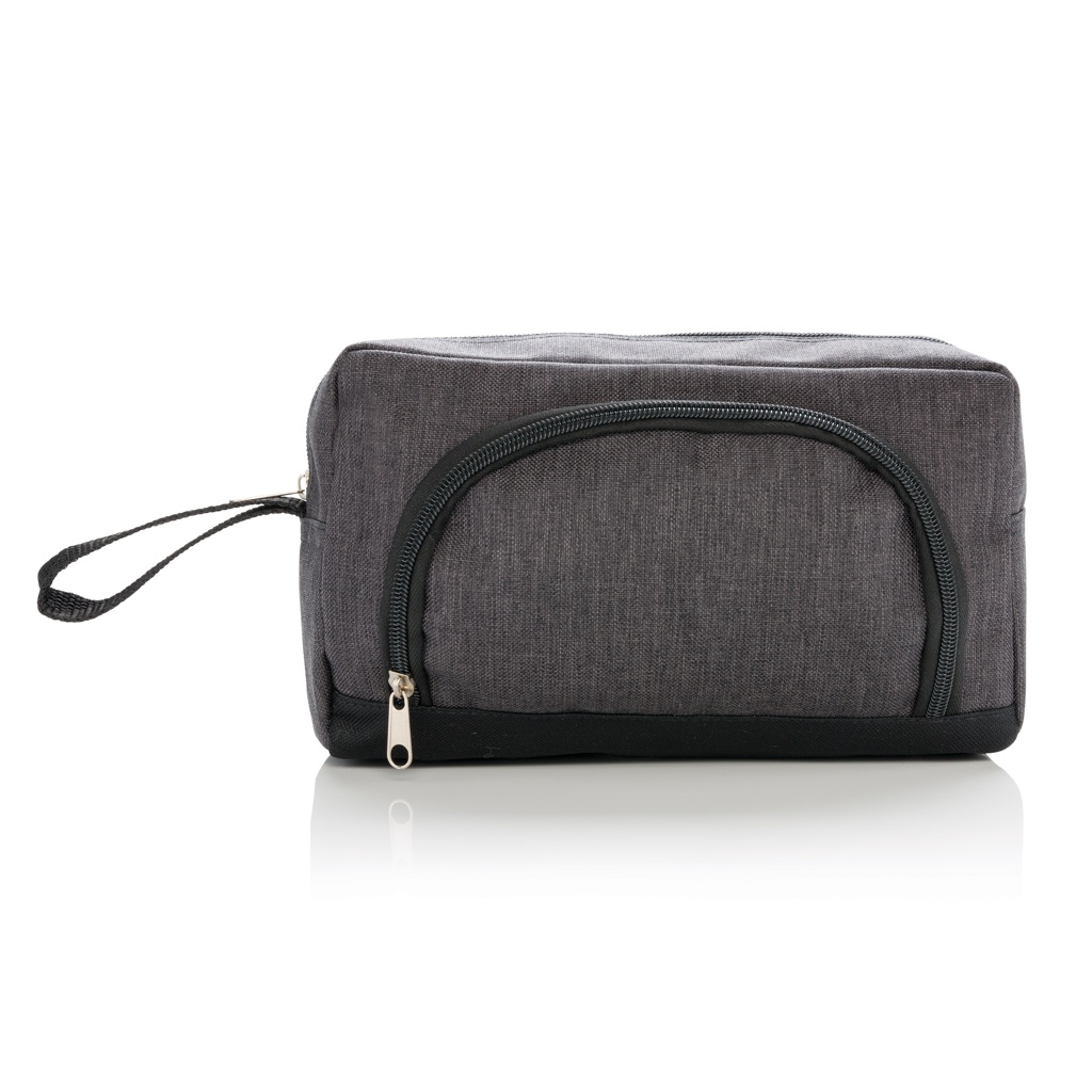 Двухцветная косметичка из полиэстера 600D, в которой достаточно места для всех ваших косметических средств и макияжа. Не содержит ПВХ.