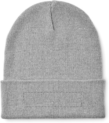 Unisex knitted beanie hat in soft stretchable polyester (64%) and acrylic (36%) with rolled up cuff. A stretchy one-size-fits-all design.