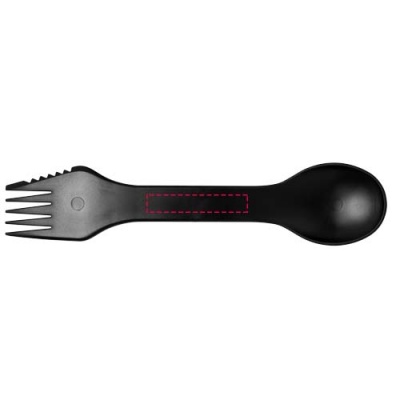 Сочетает в себе вилку и ложку с зубчатой режущей кромкой, отлично подходит для кемпинга, пикника и другого активного отдыха. .