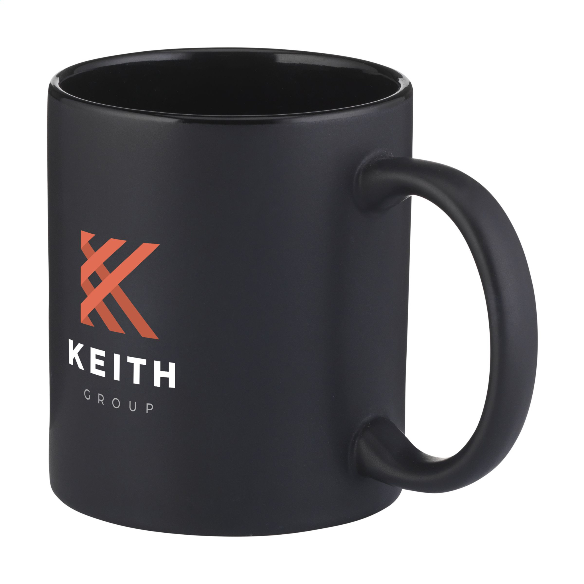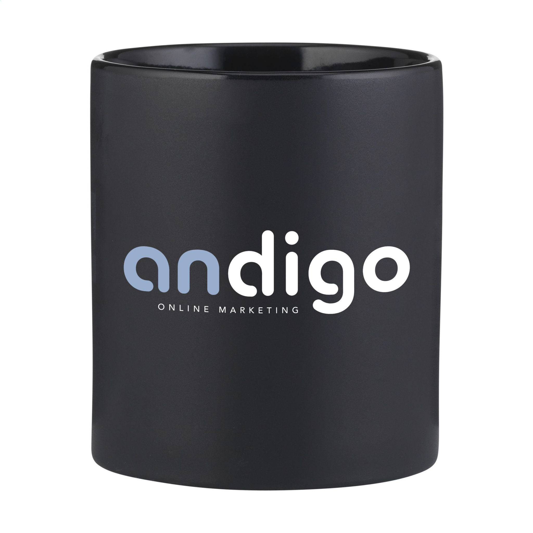 Высококачественная керамическая кружка с матово-черной внешней поверхностью и глянцево-черной внутренней поверхностью. Можно мыть в посудомоечной машине. Печать протестирована и сертифицирована в посудомоечной машине: EN 12875-2. Емкость 350 мл.
