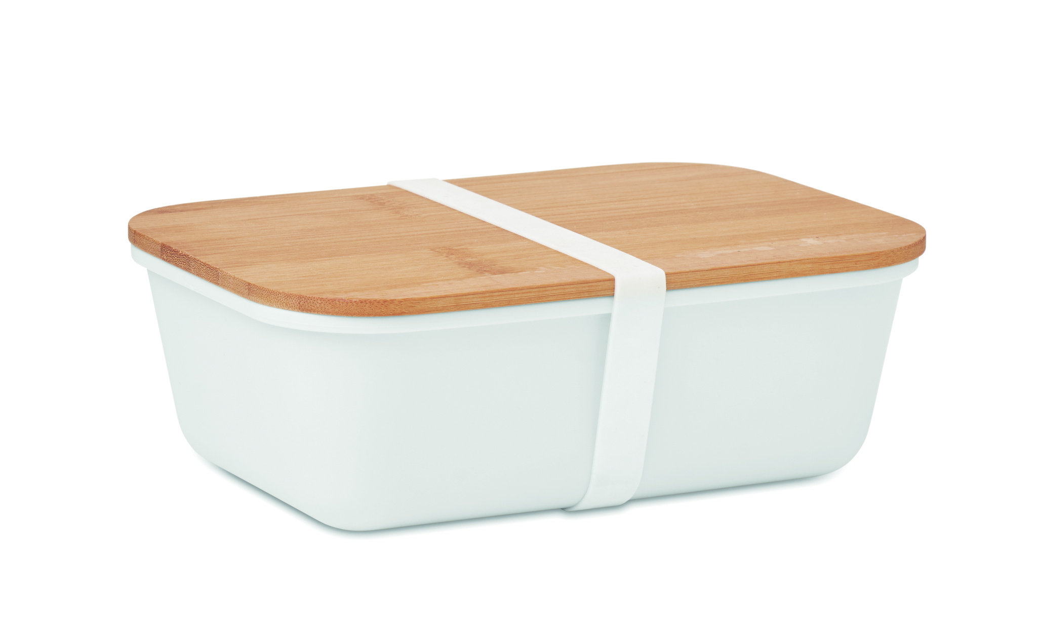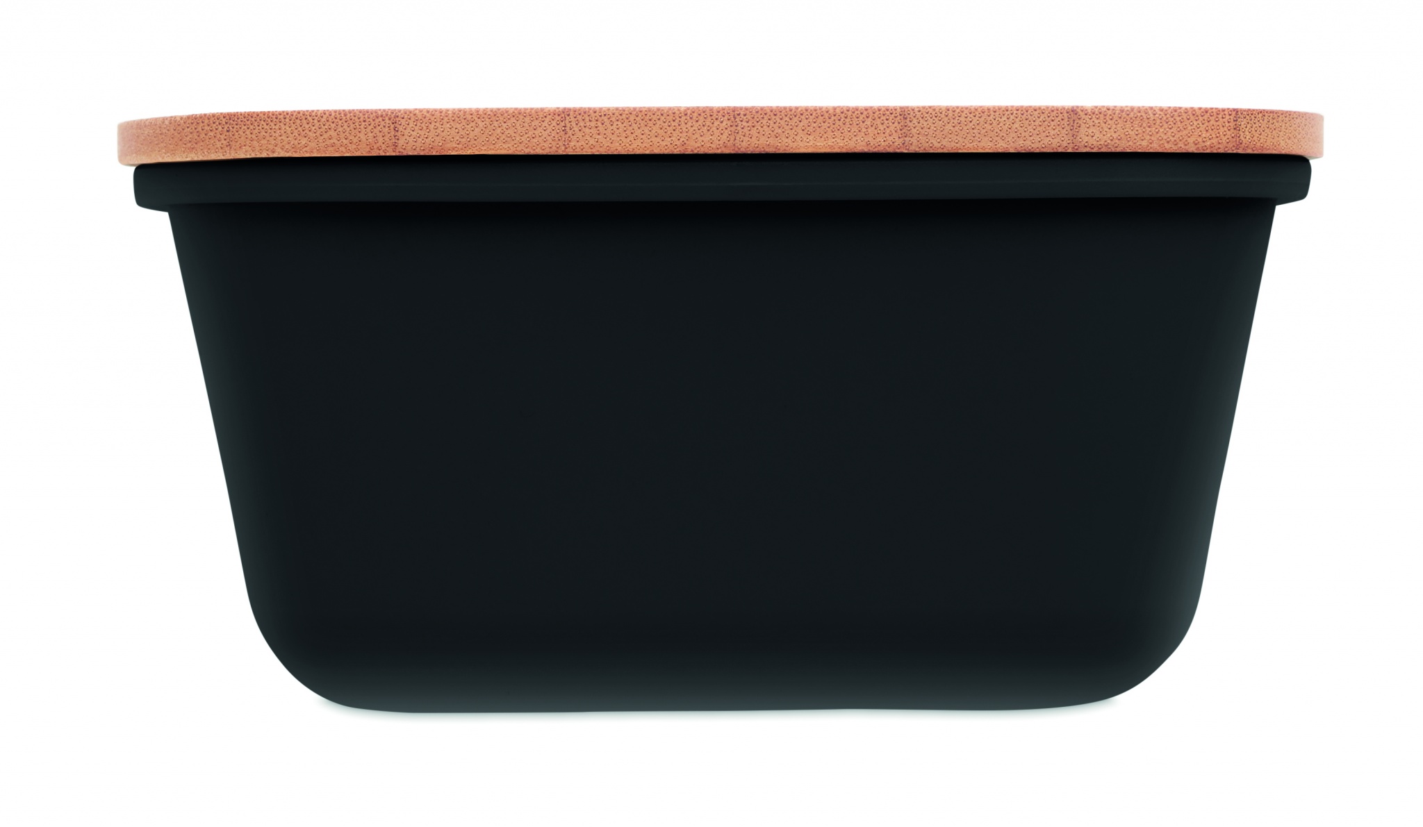 Ланч бокс из полипропилена с бамбуковой крышкой. Крышка так же служит и доской для подачи.
