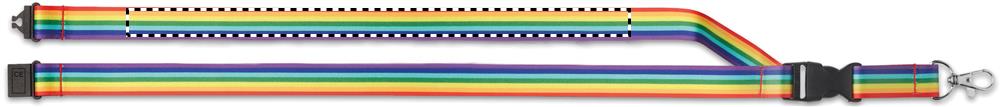 Ланьярд радужной расцветки из RPET с металлическим карабином и съемной пряжкой.