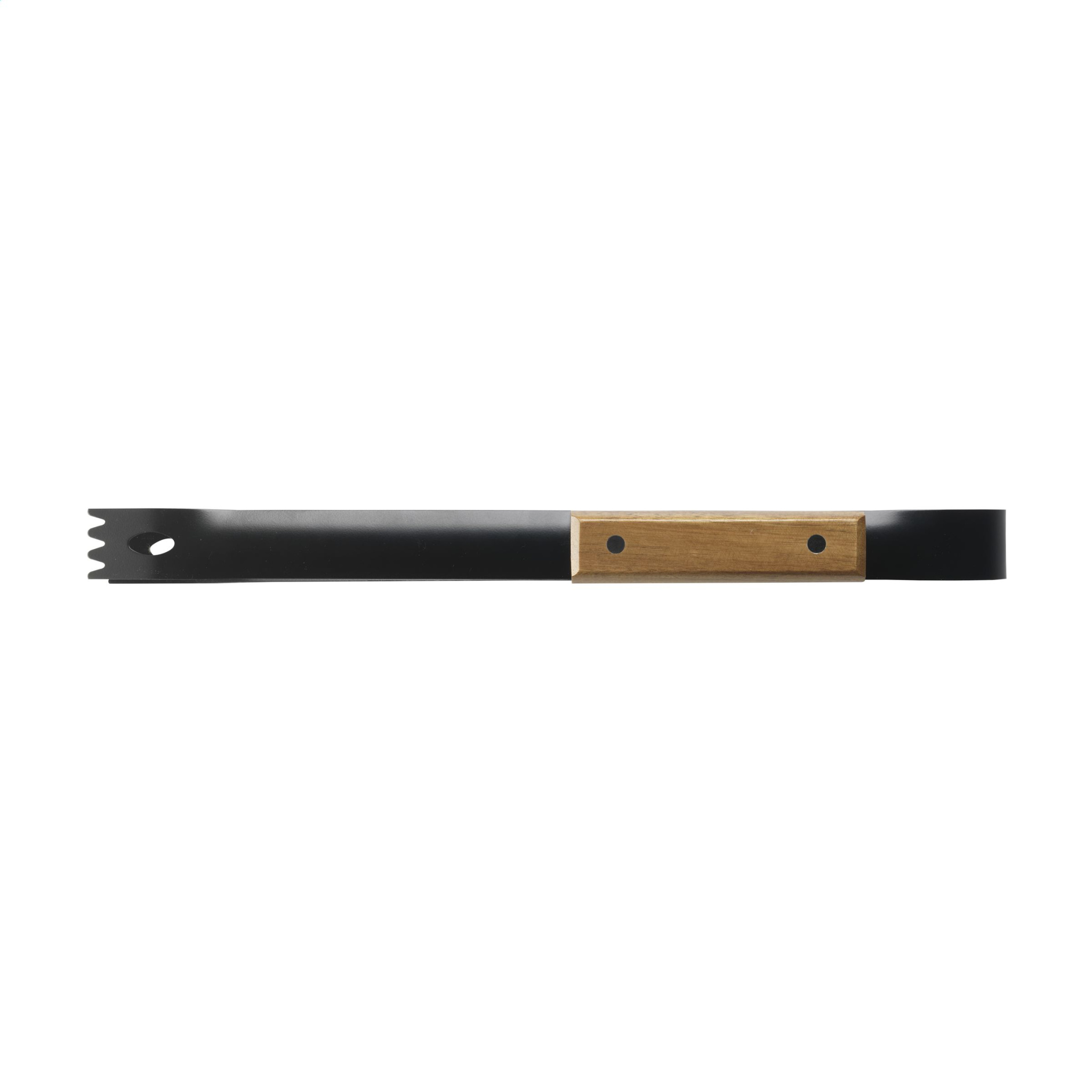 Набор для барбекю из 4 предметов: лопатка, вилка, нож и щипцы для мяса. Нержавеющая сталь имеет красивое черное покрытие, а ручки аксессуаров сделаны из акации. Этот шикарный набор поставляется в чехле из нейлона 600D.