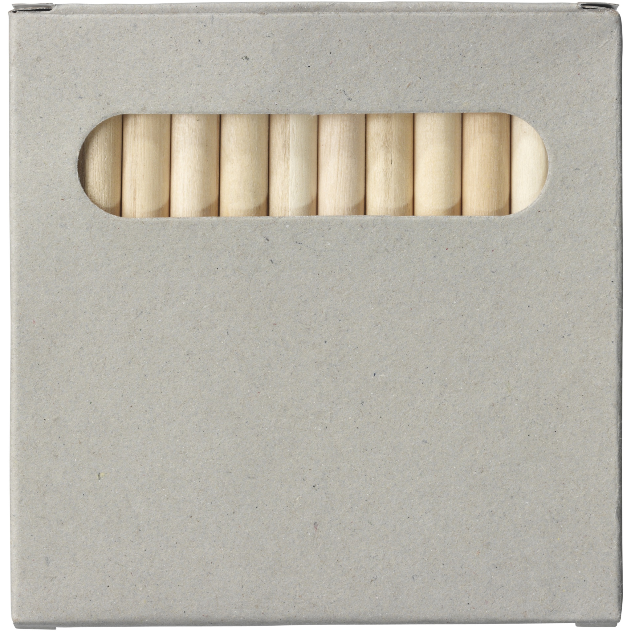 12 цветных карандашей в бумажной коробке. Нанесение не предлагается на элементы.