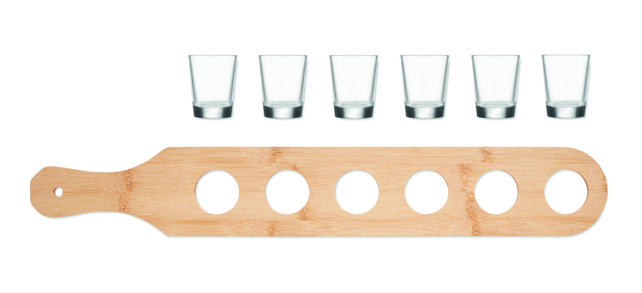 Набор из 6 рюмок на бамбуковой подставке. Емкость: 20 мл.