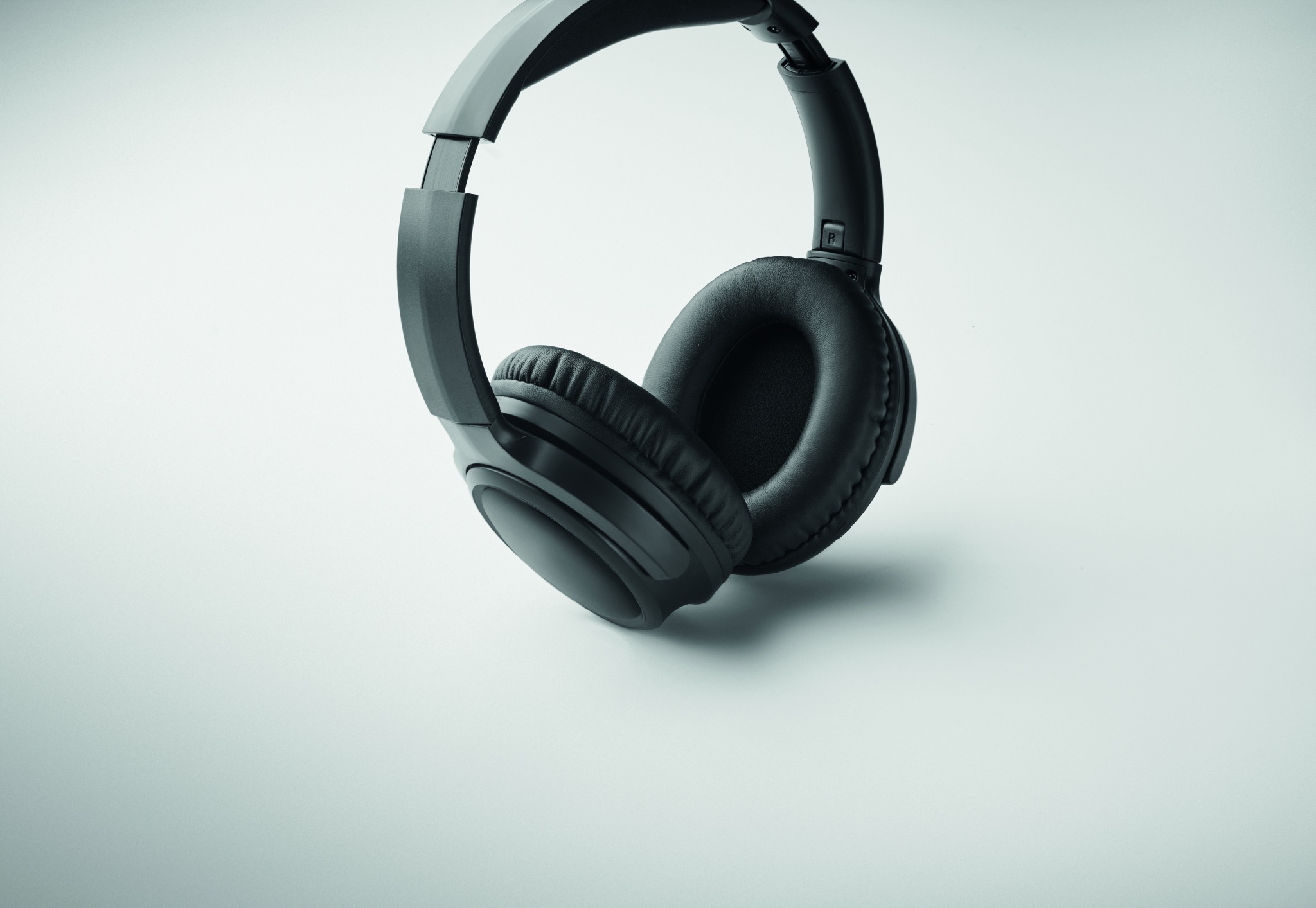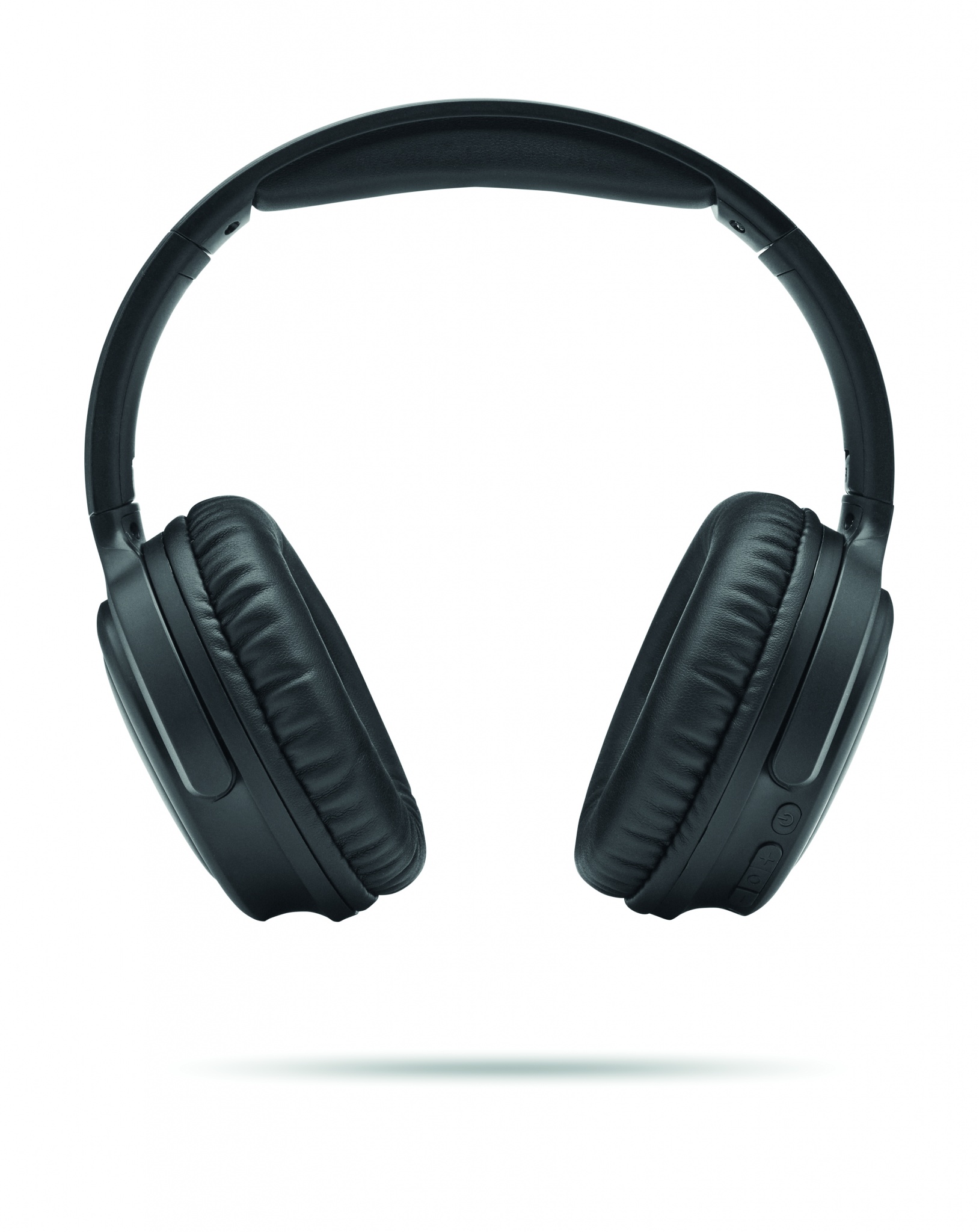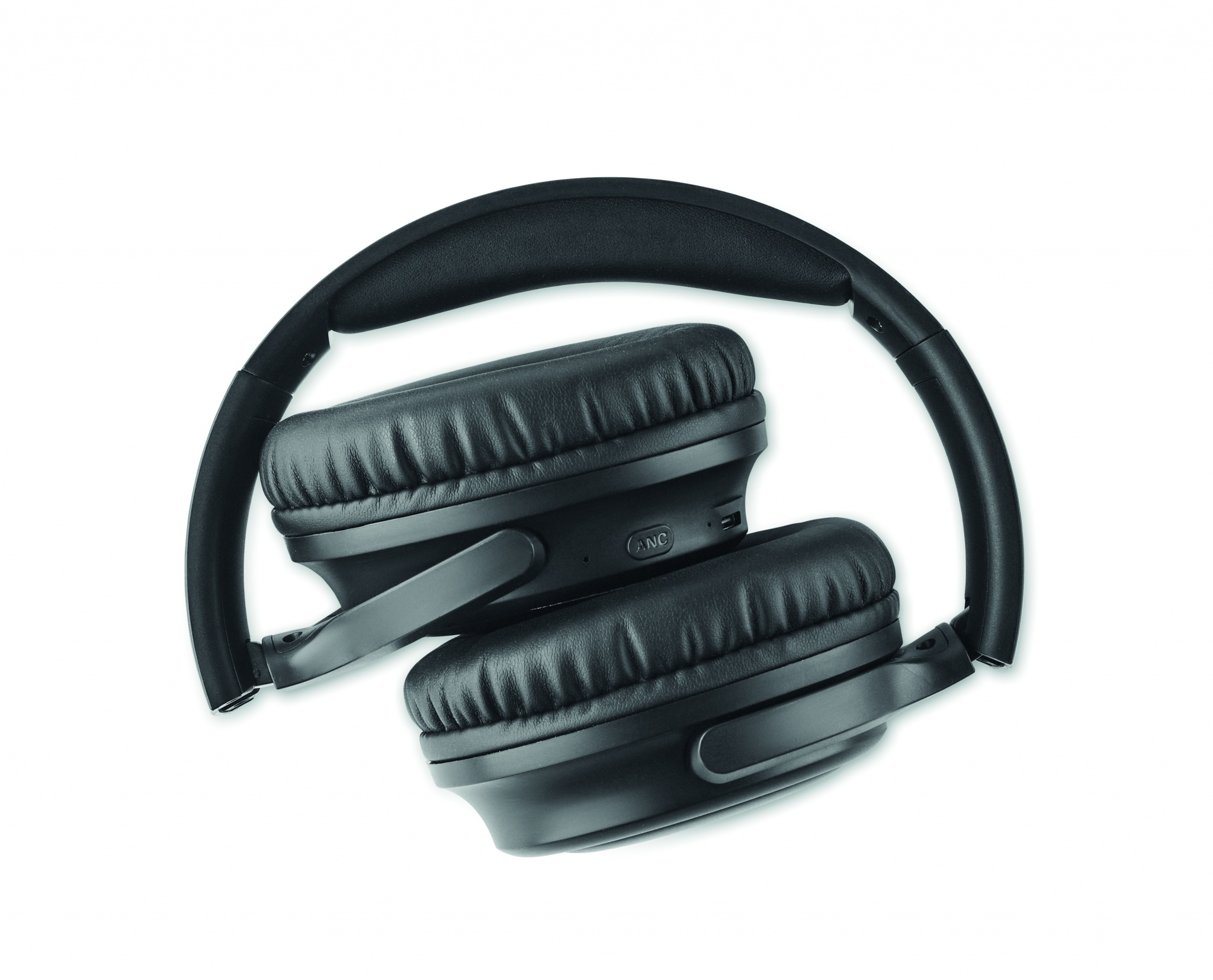 Складные беспроводные 5.3 наушники с активным шумоподавлением (ANC) в пластиковом корпусе. Функция «свободные руки» и встроенный микрофон. Время работы около 17 часов. В комплект входит кабель для зарядки тип C. Перезаряжаемый литийонный аккумулятор емкостью 200 мАч. Дальность действия: 10 m.