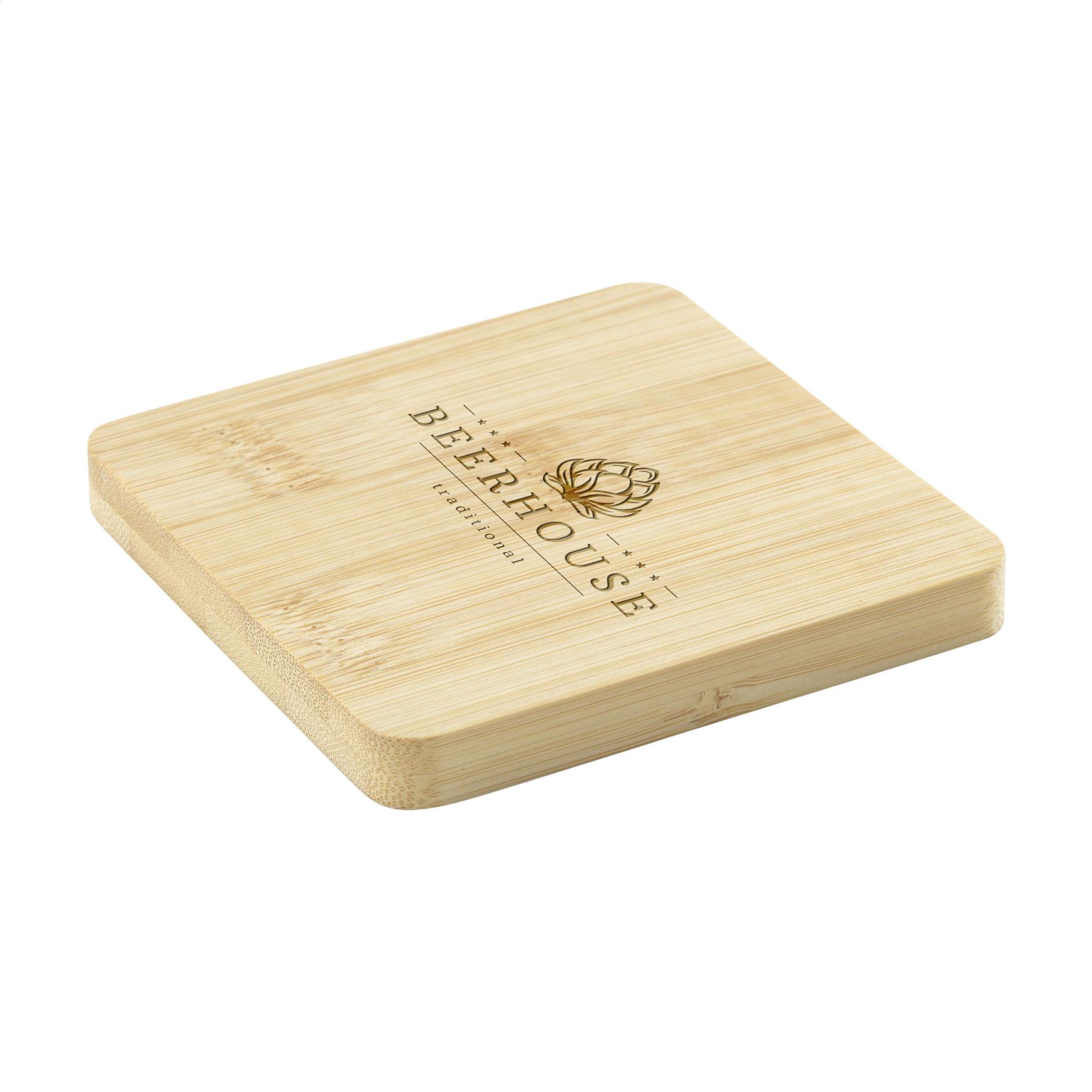 Квадратная бамбуковая подставка с металлической открывалкой для бутылок на дне. Практичная и многофункциональная. Бамбук — натуральный материал. Поэтому цвет может отличаться в зависимости от продукта.