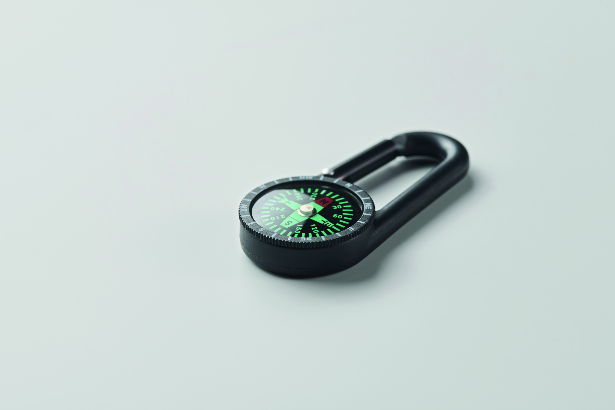 ABS outdoor compass with carabiner. The carabiner is not for climbing (non-professional use).