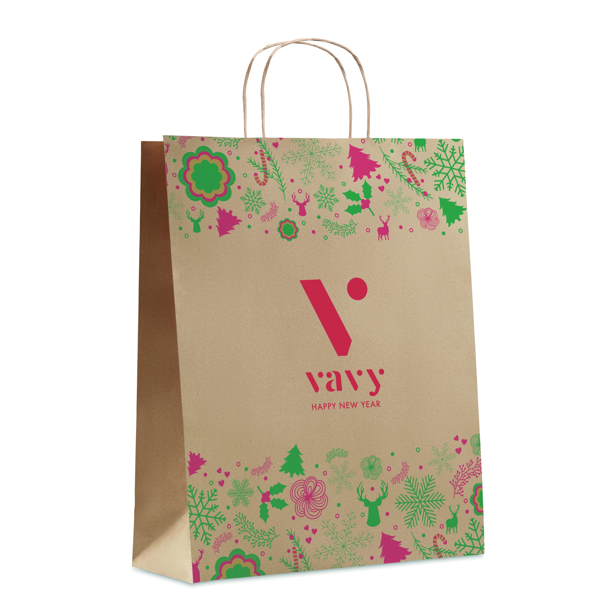 Рождественский большой подарочный бумажный пакет (50% вторичной переработки). 90 гр/м². Сделано в ЕС.