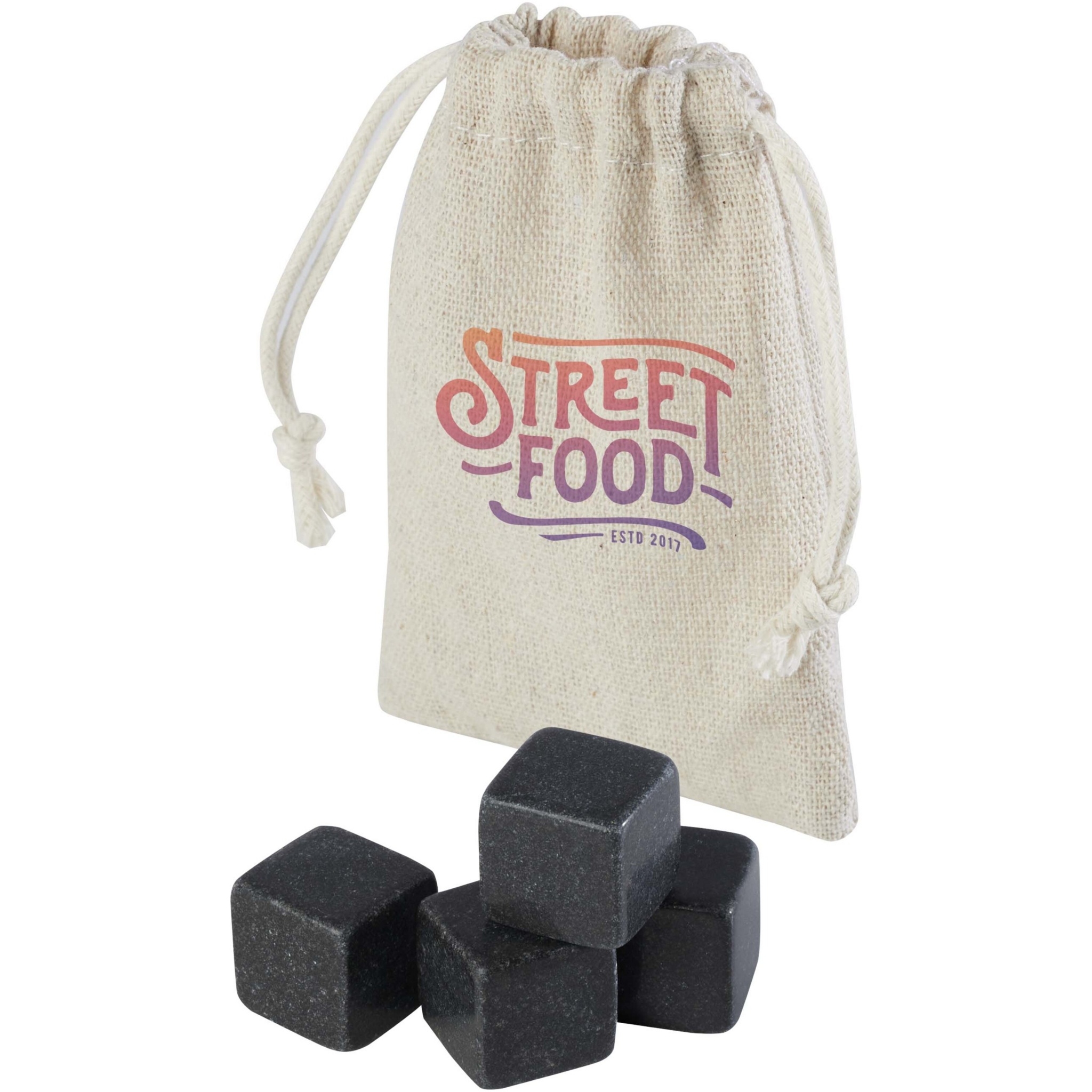 Набор из 4 многоразовых каменных кубиков для охлаждения напитков, поставляемых в льняном мешочке. Эти кубики быстро и эффективно охлаждают напитки, сохраняя при этом их вкус.